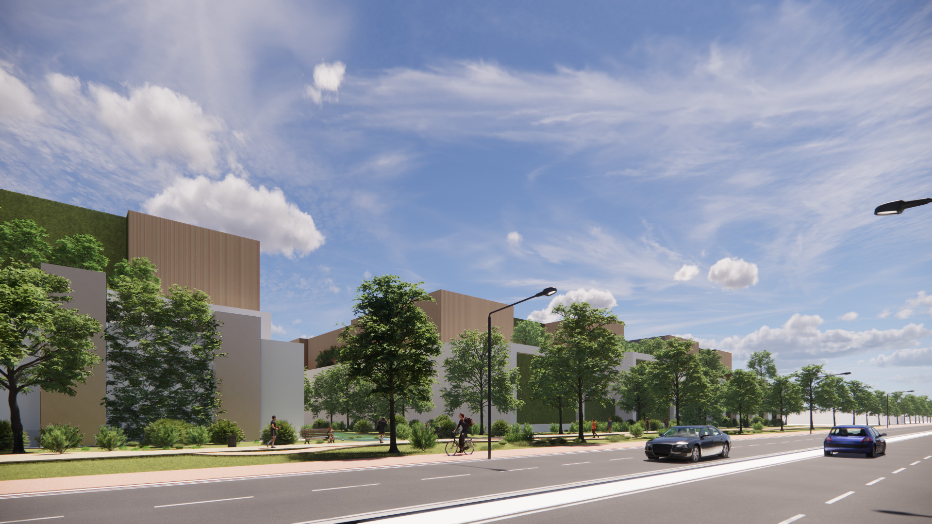 Bovenstaand beeld is een impressie van de architect. De daadwerkelijk realisatie van het gebouw of het gebied kan hiervan afwijken.