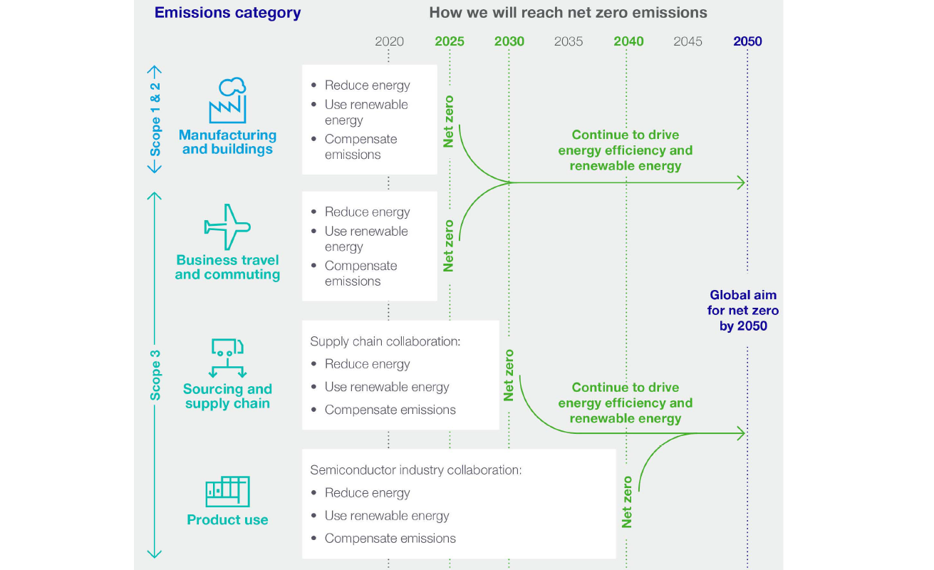 Aiming for net zero greenhouse gas emissions across our entire value chain by 2040 is a complex challenge that can only be achieved by working closely with our partners, suppliers, customers and other stakeholders. We are one of the founding members of the Semiconductor Climate Consortium, which focuses on speeding up industry value chain efforts to reduce greenhouse gas emissions.
