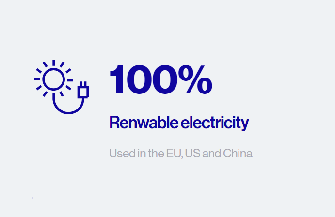We aim to achieve our target by reducing energy consumption across our operations (buildings and manufacturing), using renewable energy and compensating CO2 emissions.
